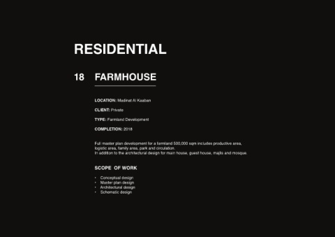 In addition to the architectural design for main house, guest house, majlis and mosque.